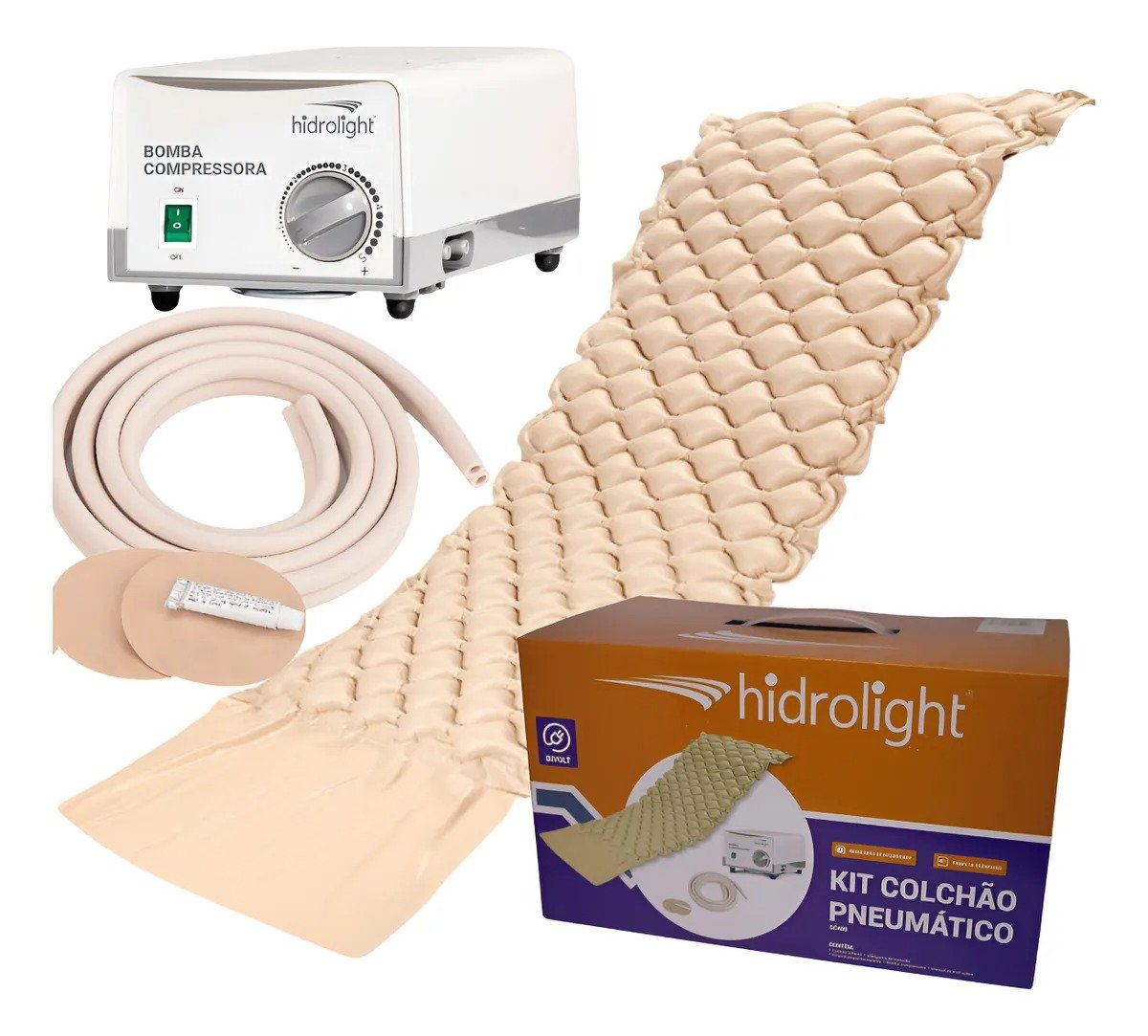 O Colchão Pneumático Anti Escaras HidroLight Bivolt foi desenvolvido para proporcionar máximo conforto e proteção a pacientes que permanecem longos períodos deitados. Seu sistema de alívio de pressão alternada distribui o peso do corpo de forma uniforme, reduzindo pontos de pressão e prevenindo o surgimento de escaras.