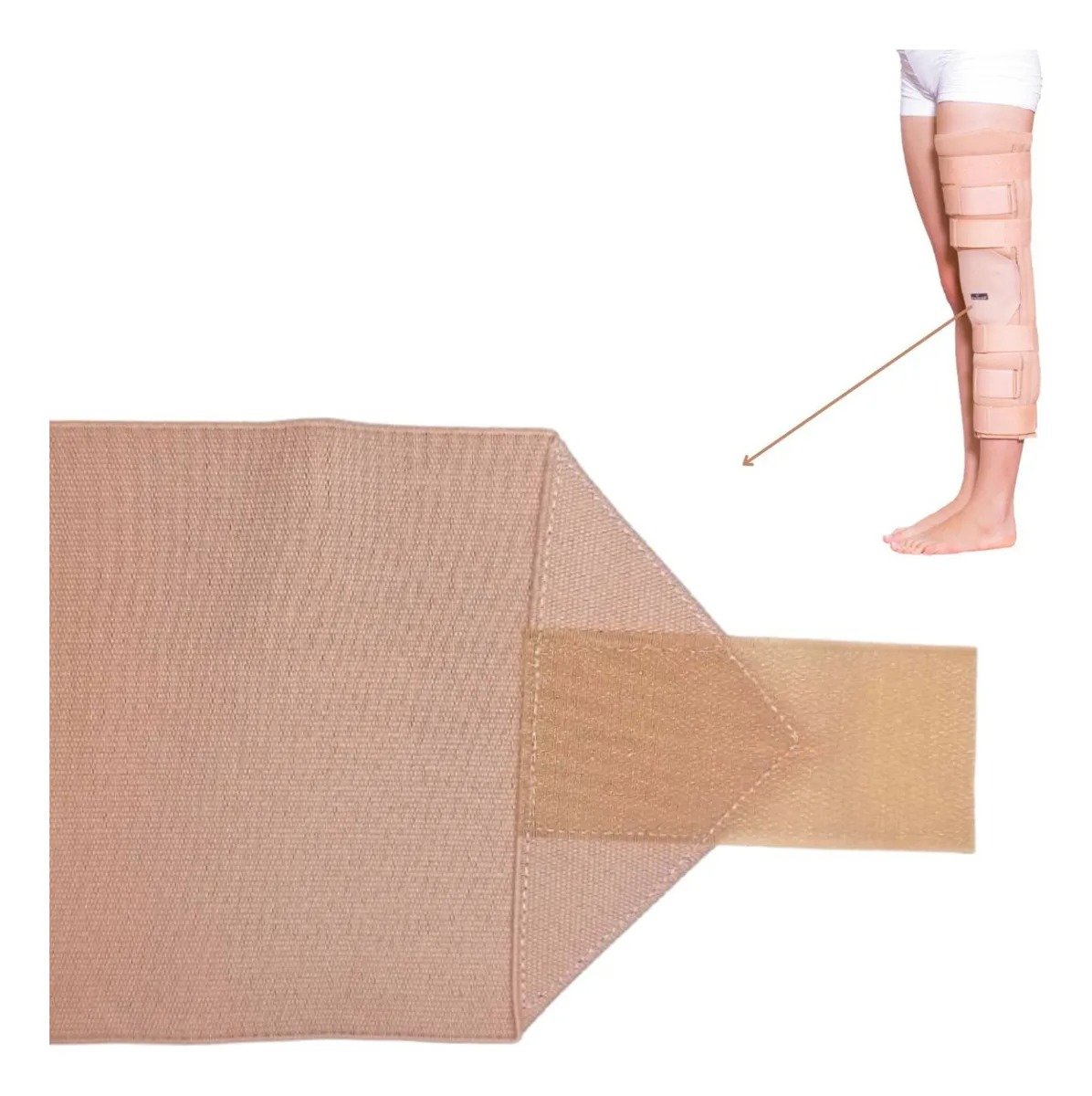 Desenvolvido com design anatômico e estrutura leve, o imobilizador conta com hastes posteriores fixas, moldadas conforme a curvatura natural da perna, e tiras laterais ajustáveis, que garantem uma fixação firme e personalizada de acordo com a circunferência da perna.